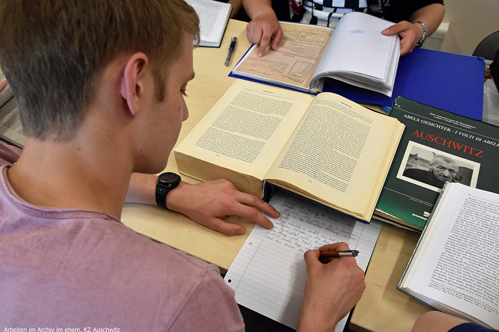 Das Projekt startete im Herbst 2016. Zur Vertiefung der Recherchen hat der Geschichtskurs zwei Fahrten durchgeführt. Im Mai 2017 sind die SuS eine Woche nach Krakau und Auschwitz-Birkenau gereist. Zentral waren Recherchearbeiten im Archiv, das sich im ehemaligen Stammlager (Auschwitz I) befindet. Dort haben die SuS über die Personen Informationen erarbeitet, die später dann im Frankfurter Prozess auf der Anklagebank saßen. Im Herbst 2017 hat der Kurs während einer Workshop-Woche in Frankfurt am Main, mit Unterstützung des Fritz-Bauer-Instituts, die Geschichte des ersten Frankfurter Auschwitz-Prozesses und die Bedeutung, die Fritz Bauer für das Zustandekommen dieses Verfahrens hatte, eingehend studiert. Der Zeitrahmen für das Projekt umfasste etwa ein Kalenderjahr7.